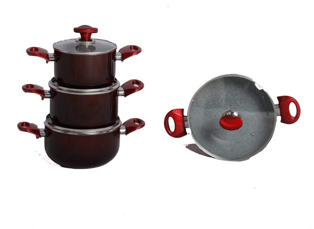 سرویس قابلمه گرانیتی نچسب مدل عروس رافیا 8پارچه کیفیت بینظیر برای جهیزیه ومصرف روزانه آشپزخونه کیفیت دسته ها کاملا نسوز میباشد کیفیت داخل کار گرانیت 5لایه نچسب