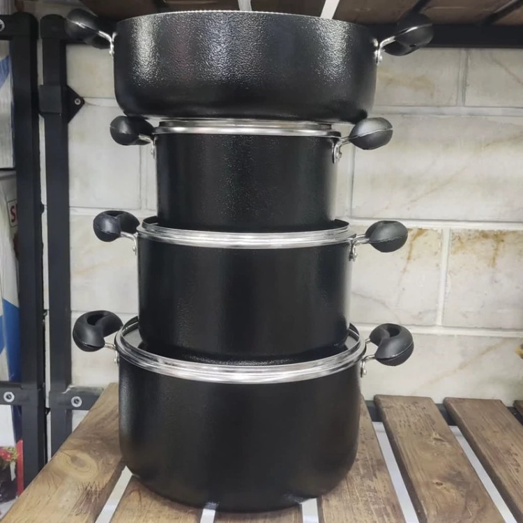 سرویس قابلمه گرانیتی 7پارچه آذین شامل سه عدد قابلمه و یک عدد تابه دودسته کیفیت دسته کاملا نسوز میباشد کیفیت داخل کار از متریال عالی استفاده شده ضمانت پس از فروش ارسال فوری گرانیت داخل کار کاملا نچسب میباشد رنگ بدنه مشکی چرم است