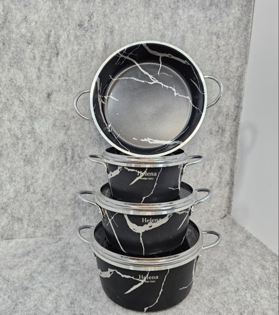👈👈 شامل 3 عدد قابلمه و یک عدد تابه 🔷️سایز قابلمه ها 20_ 24_ 28_ 🔷️ یک عدد تابه28 🔷️3 عدد درب پیرکس سوپاپ دار 🔷️کیفیت گرانیت عالی 🔷️ بسته بندی شیک 🔷️طراحی زیبا
