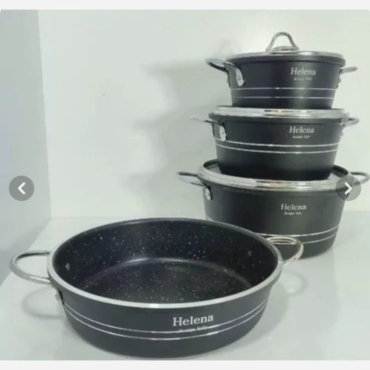 سرویس قابلمه گرانیتی 7پارچه هلنا کیفیت عالی قیمت مناسب ارسال فوری سه عدد قابلمه و یک عدد تابه دودسته دسته ها از جنس فلز کاملا نسوز میباشد کیفیت گرانیت داخل کار عالی مناسب برای 4نفره 5نفره و8نفره سایز قابلمه ها 20/24/28 و سایز تا28