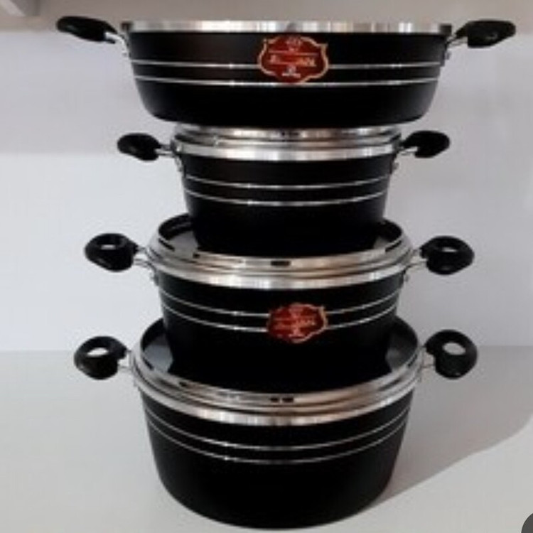 سرویس قابلمه گرانیتی طرح چدن 7پارچه تک رنگ فقط مشکی جنس عالی ارسال رایگان