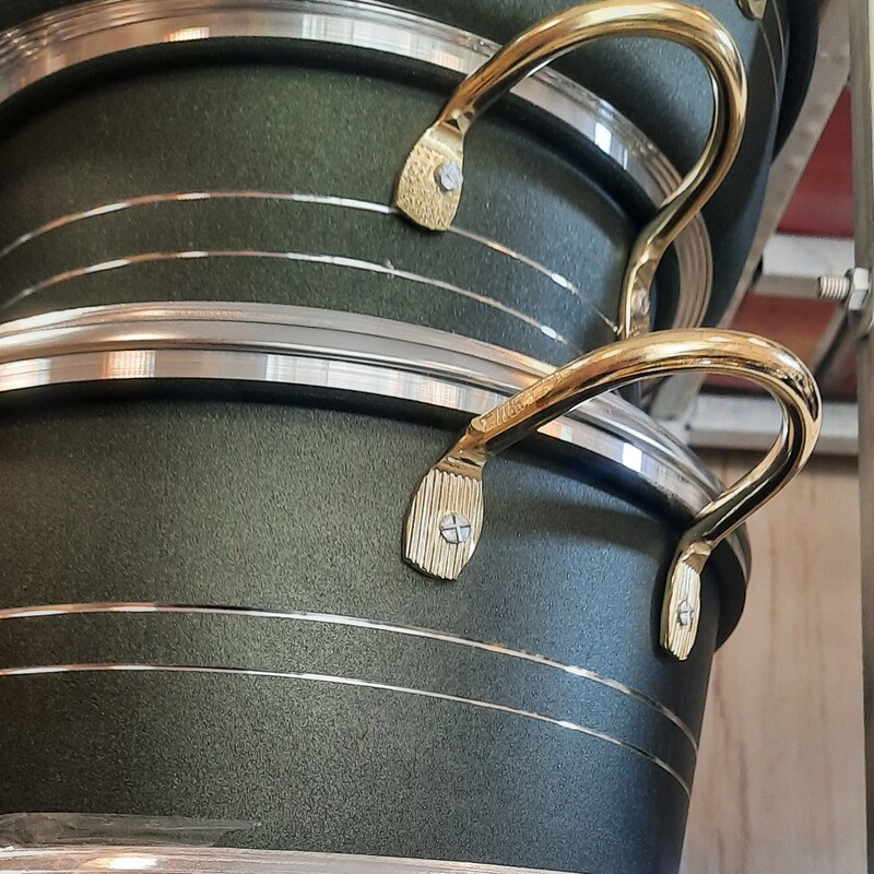 دسته ها طلایی و دکمه های در قابلمه هم طلایی میباشد.